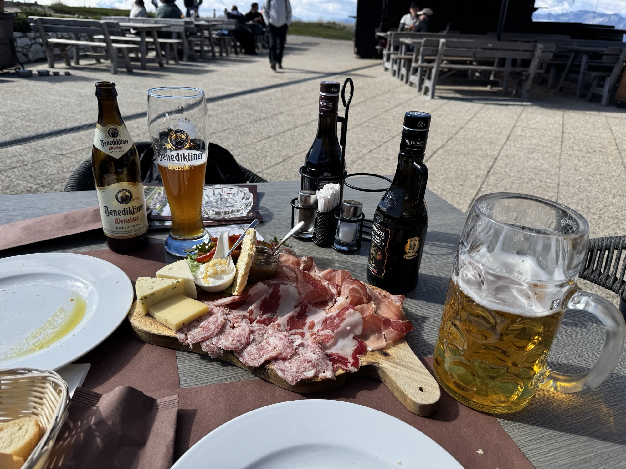 After our little hike on Monte Baldo, we stopped at a mountaintop restaurant and enjoyed a tagliere (meat and cheese board) for lunch. I took advantage of them catering to the large number of German tourists that visit the area by ordering a liter of beer. Heather took advantage of the same by ordering the Apfelstrudel. (I got the tiramisu.) #travel #food