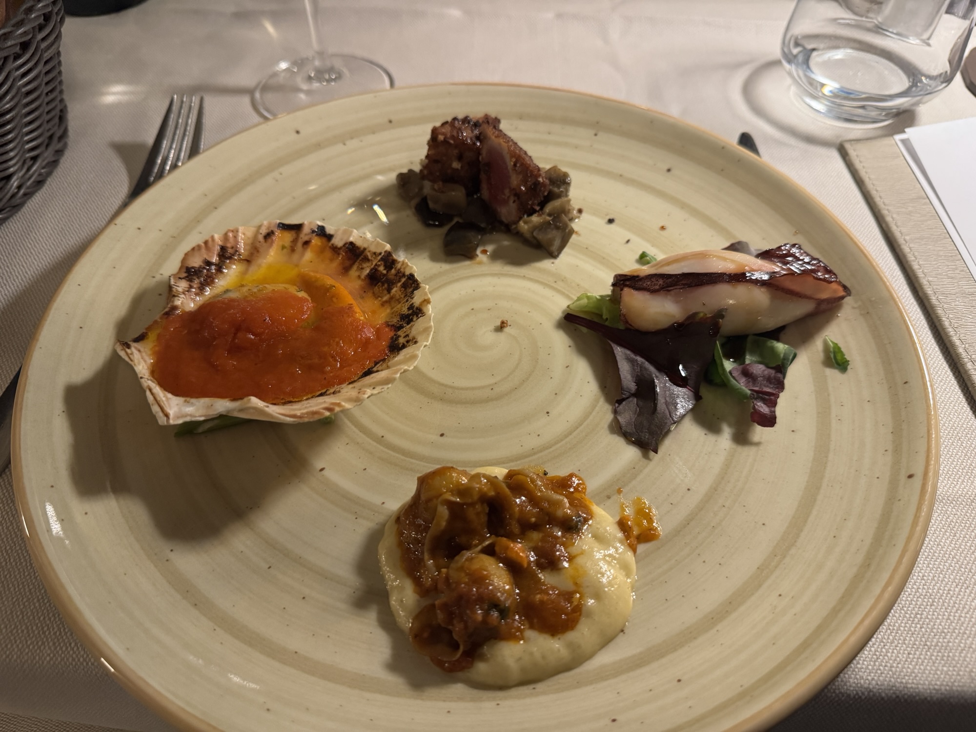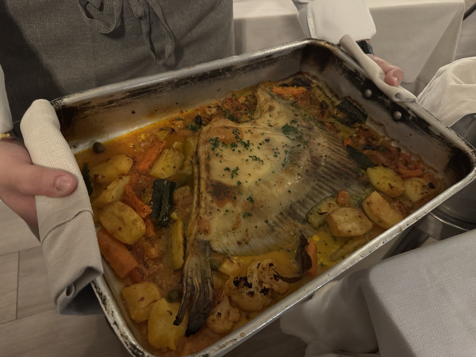 After a disappointing dinner yesterday, it was nice to enjoy an excellent meal this evening at Ristorante Giuly in Brenzone sul Garda (just South of Malcesine). The restaurant’s menu is fish focused, and their wine list is impressive. We enjoyed a Tenuta Roveglia Lugana Riserva (Lugana is the local white wine) with our whole roasted turbot, which the server filleted table-side. It was all delicious. #travel #food #wine