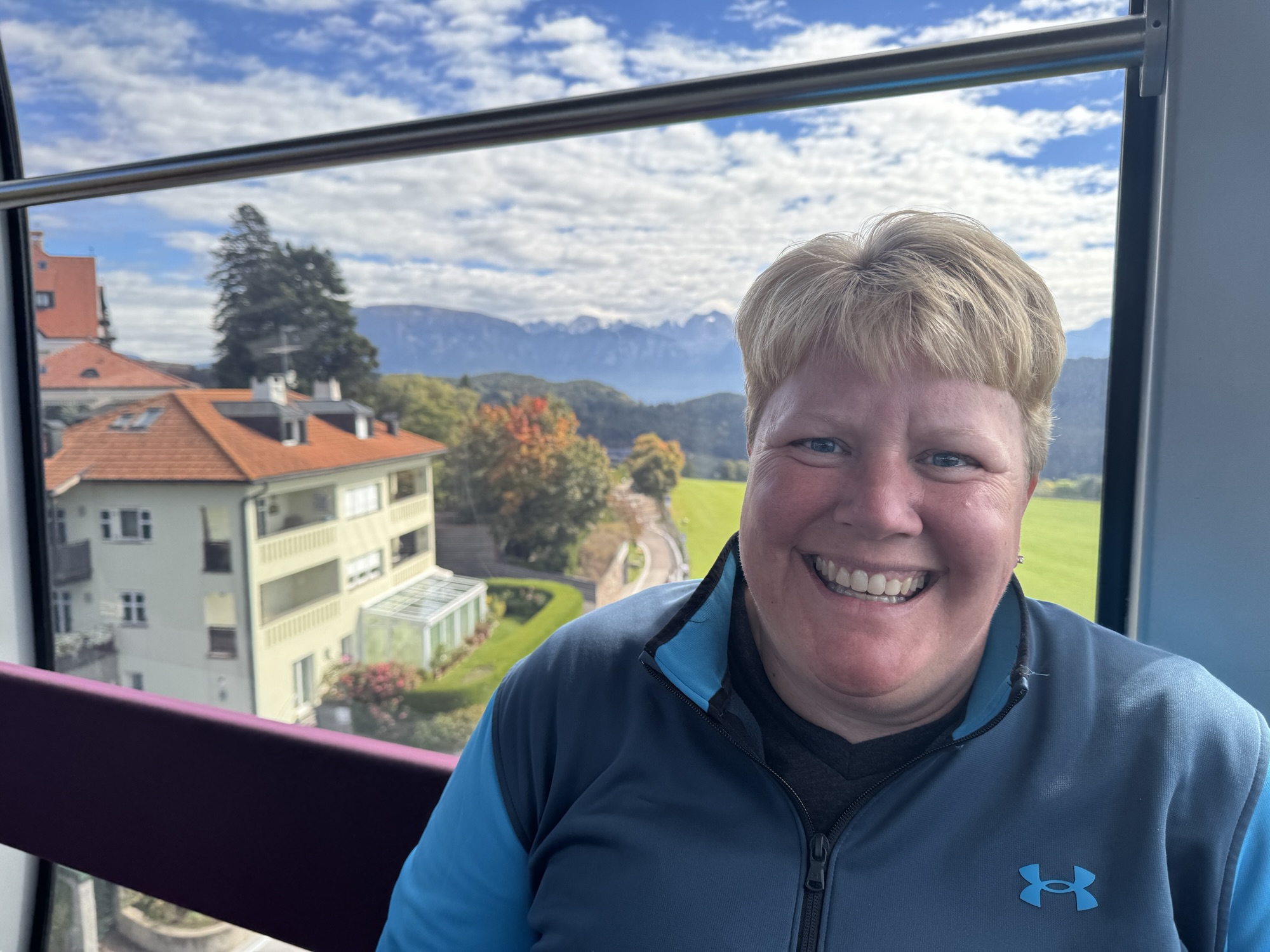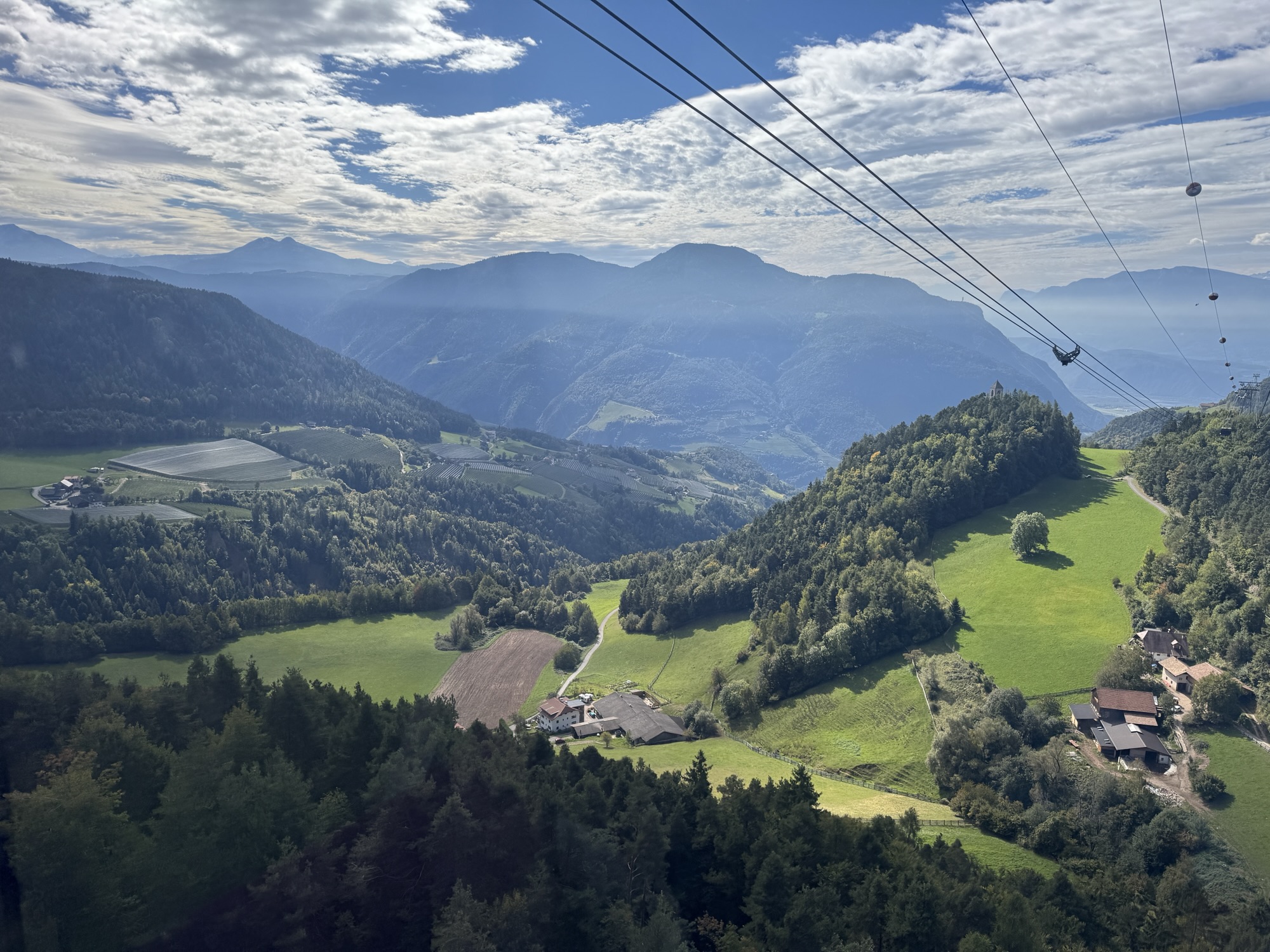 Yesterday was a travel day. We hired a car to drive us from Malcesine to the nearest train station in Rovereto, then took the train to Bolzano. The province that Bolzano is in (Alto Adige) was part of Austria until after World War I, so this is a Germanic people. German is just as widely spoken as Italian in Bolzano, and German is the dominant language in the countryside. After arriving in Bolzano, we took a cable car to Renon while we waited for our room to be ready. #travel