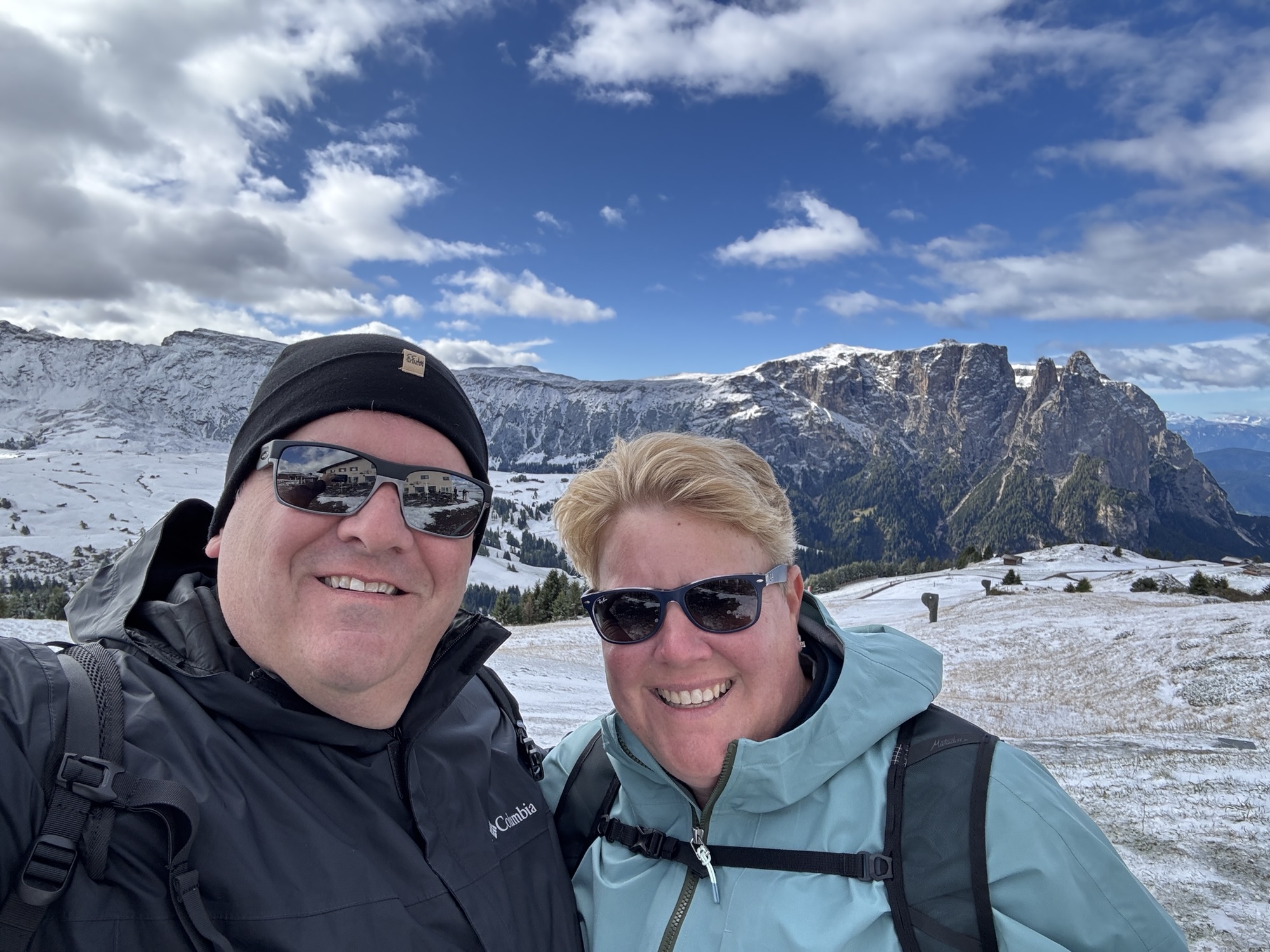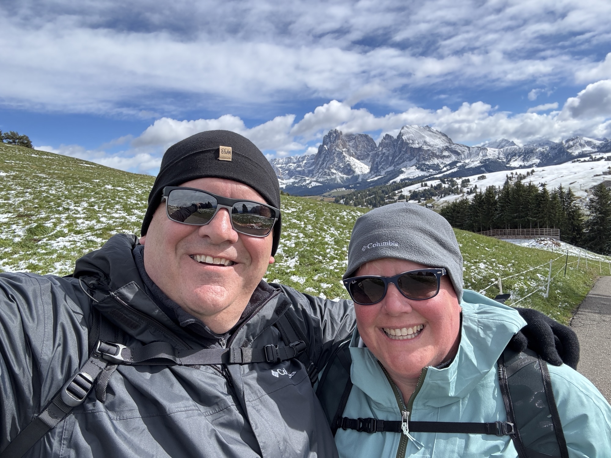 The plan was to hike the “Trail of the Witches”, a hike that starts at high elevation then descends fairly gently back to Compatsch. I was expecting chilly temps for the hike, but we arrived to find snow on the ground, and a steady wind that made it feel even colder. Trail conditions alternated between slippery with ice and slippery with mud. Under the conditions, we decided to skip the most exposed sections, instead taking a shortcut to a mountain hut (where we warmed ourselves with hot chocolate and apple strudel) before descending back to Compatch. Altogether, it was about 5 miles. #travel