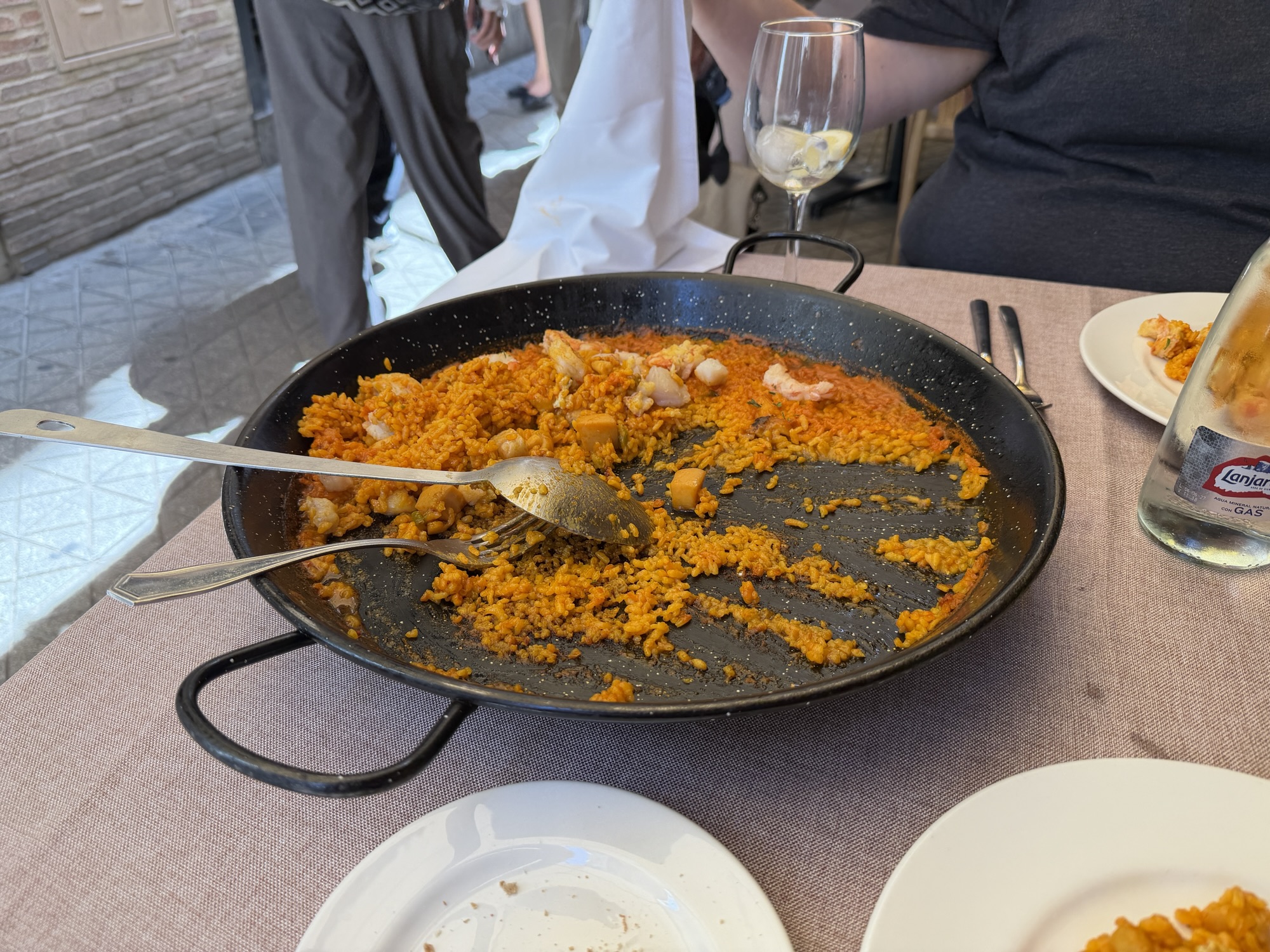 After an arduous morning touring the cathedral, Heather and I stopped at nearby a nearby restaurant for a lunch of paella and the local cocktail called a “Tinto Verano”. Nearest I can figure, the Tinto Verano is a mix of fruity red wine, lemonade, and club soda, all poured over ice and an orange slice. It’s nice and refreshing on a hot day. #travel #Spain #Sevilla #food #wine