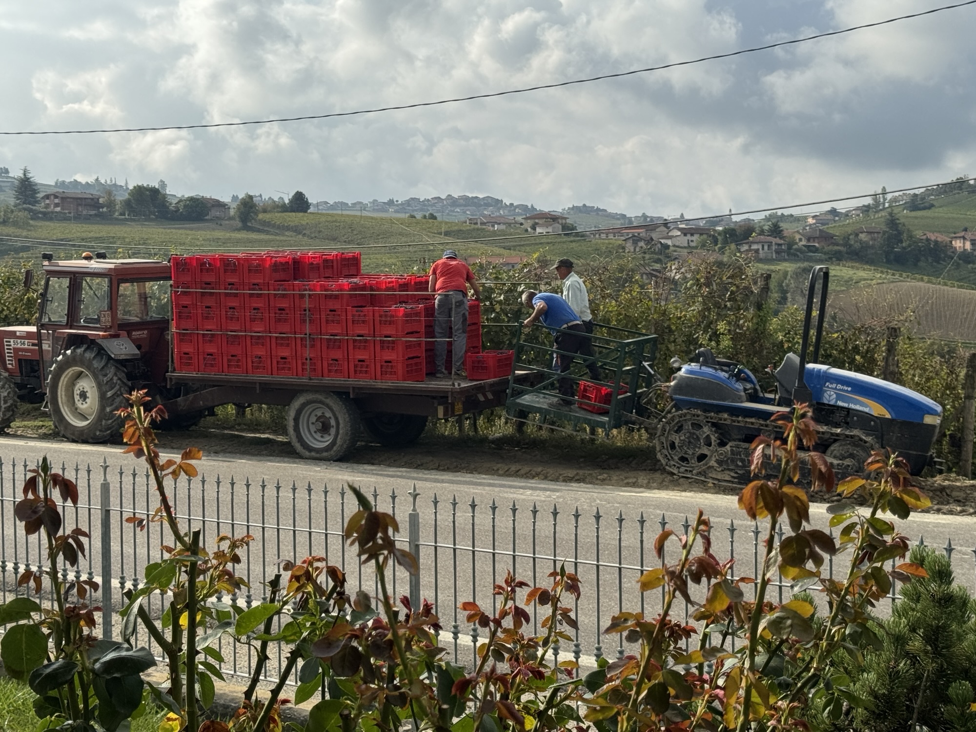 I was surprised to learn that Joe’s house is directly across the road from Rabajà (pronounced rah-bah-YA in the Piedmontese dialect), one of the most well-known and prized vineyards in Barbaresco. Harvest is in full swing here, and tractors and field workers everywhere—in the fields and on the roads.