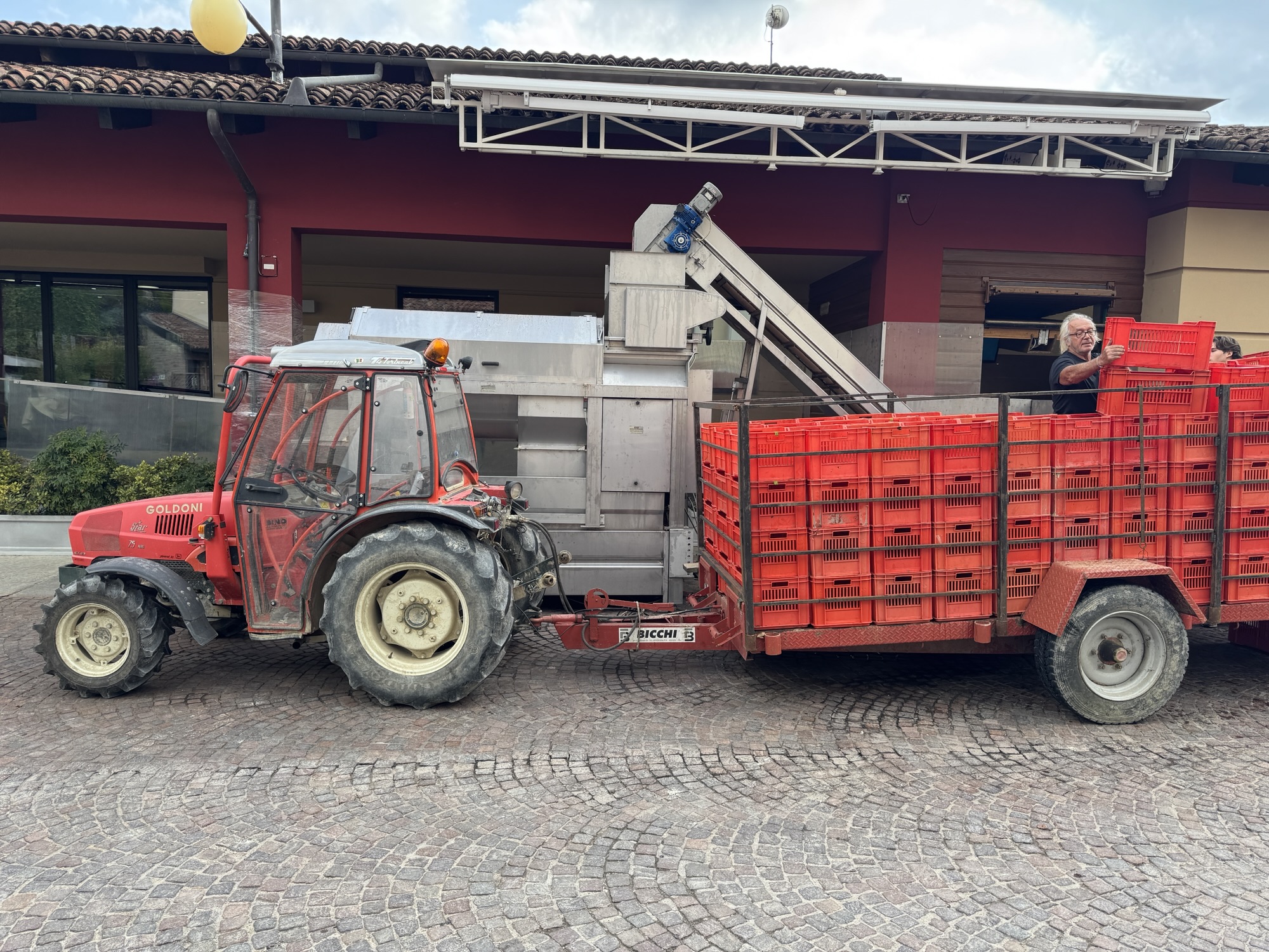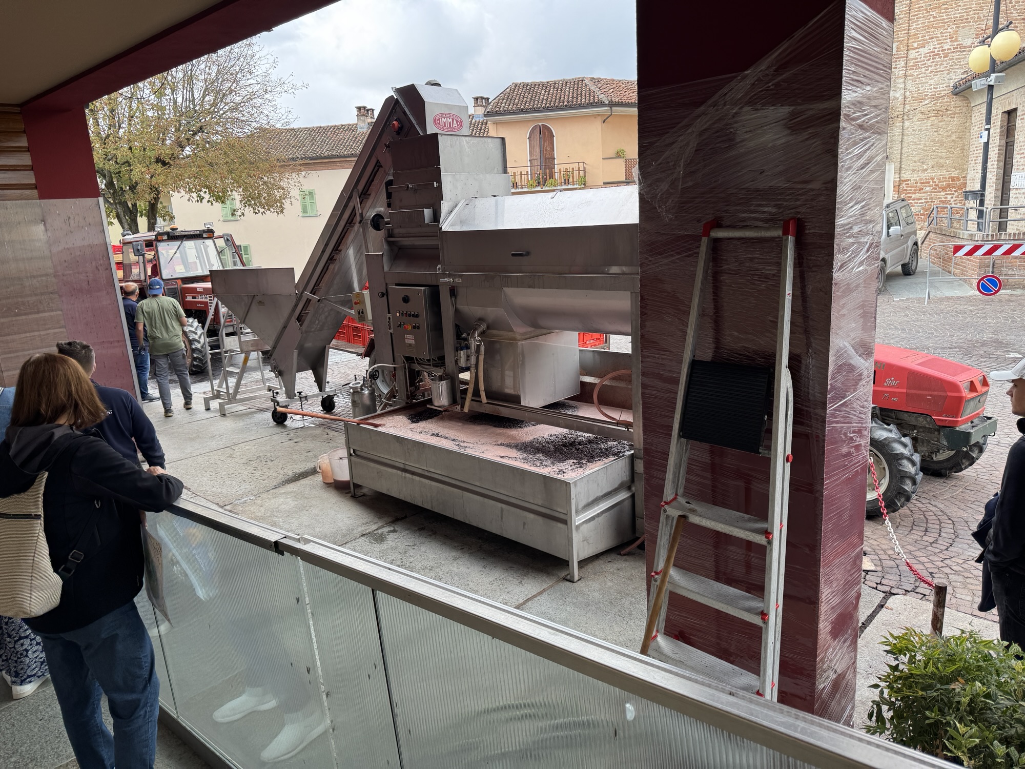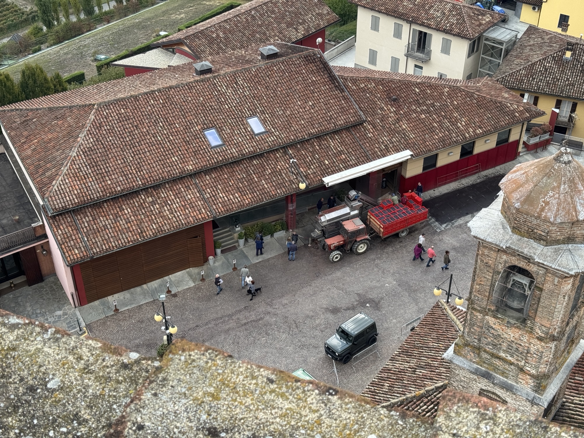 We went into the village of Barbaresco to look around and found the same tractor we had seen earlier at Rabajà in the town square, delivering its grapes to Produttori del Barbaresco, the local farmer’s co-op and a very highly regarded producer of Barbaresco wines. The grapes are weighed and de-stemmed right there on the square.
