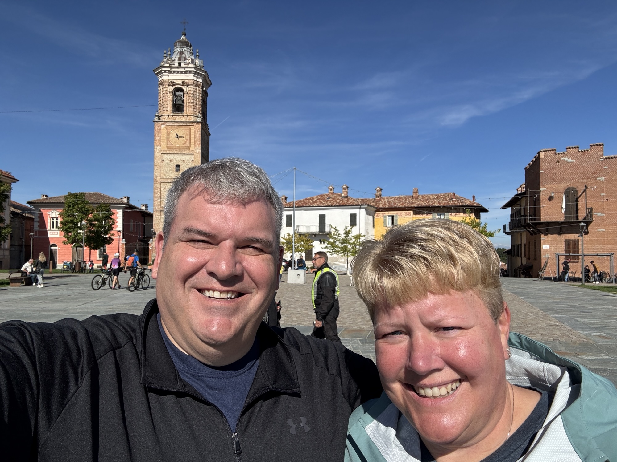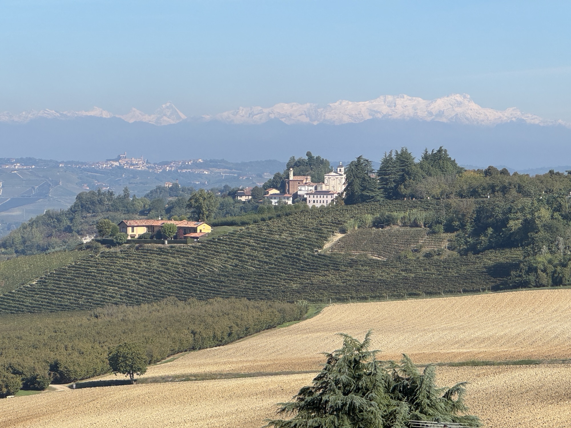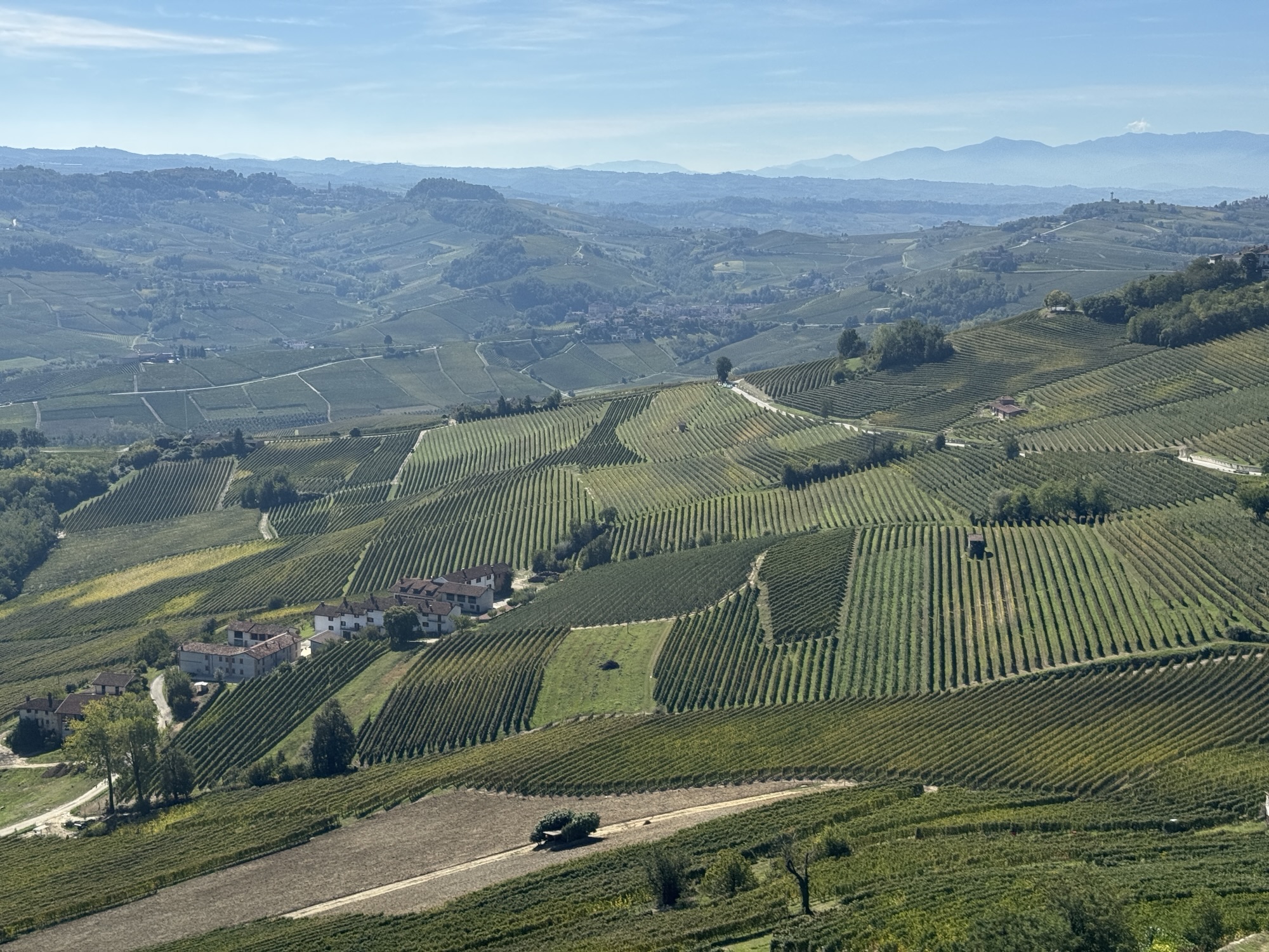 Adam and Natalie are hosting a tour group later this week. Heather and I will be joining the first two days of the tour before splitting off to do our own thing, so we’re staying at the tour hotel, Castel di Guarene (https://www.castellodiguarene.com). It’s fancier than we’d usually pick, but it’s convenient. We woke up to spectacular views of the countryside with the Alps in the distance. I can see why they chose this hotel for the tour!