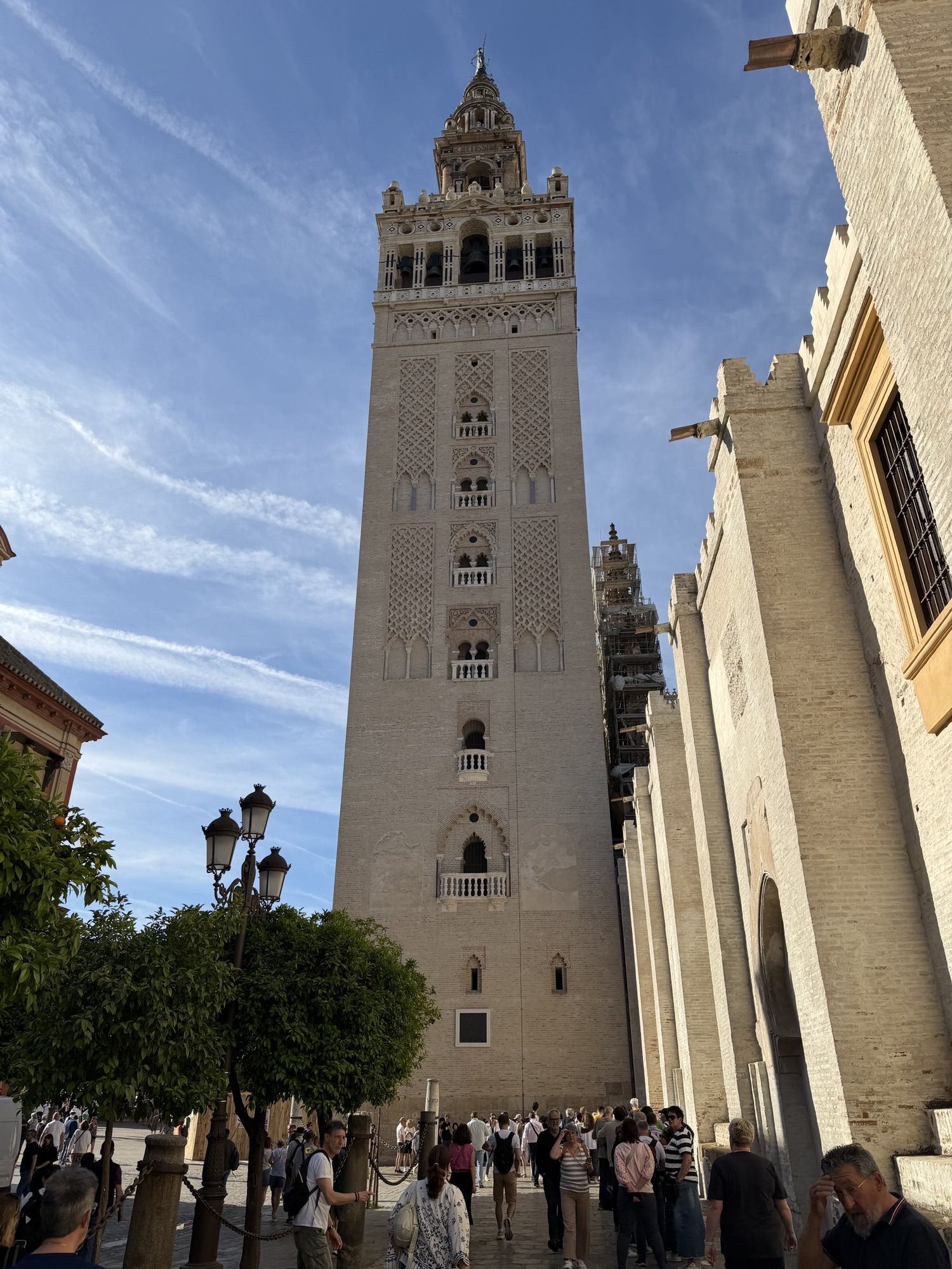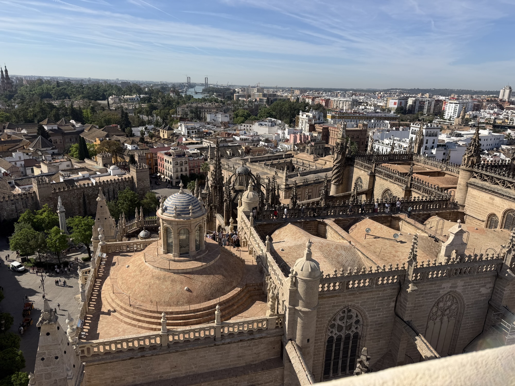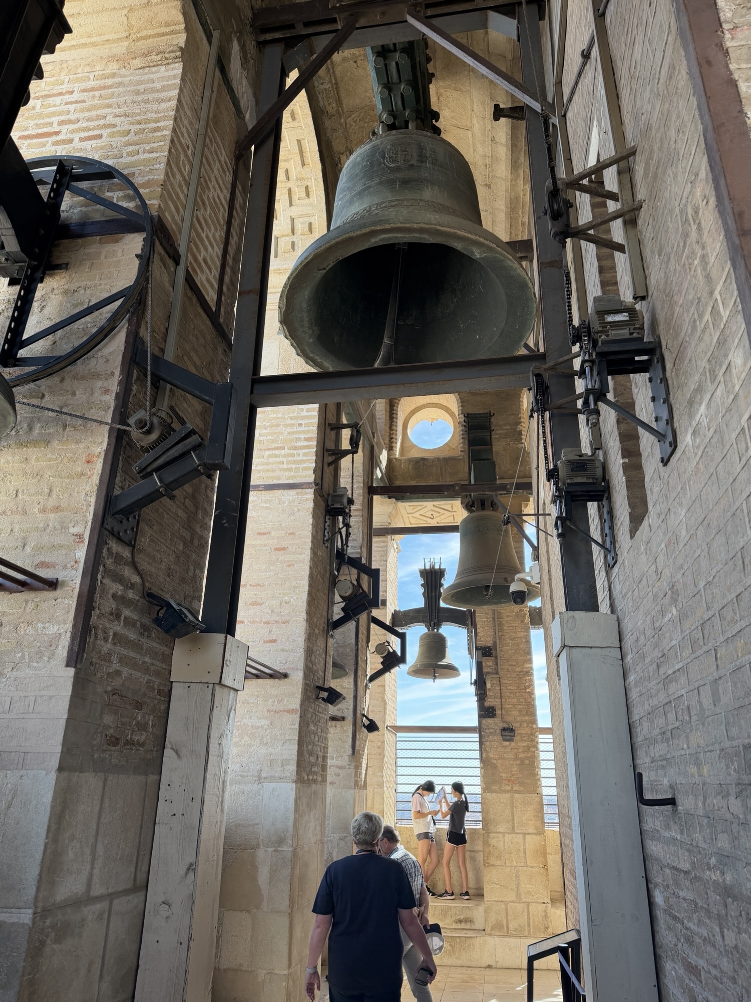 Fist stop on our tour of the Sevilla Cathedral was the top of the Giralda bell tower (340 feet high), which is the only part that remains of the Moorish mosque that was torn down after the Reconquista. The Catholic cathedral was built (from 1402 to 1519) on the foundations of the demolished mosque, with the Giralda retained as the new church’s bell tower. #travel #Spain #Sevilla